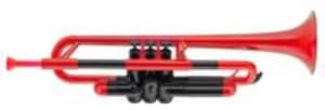Kunststoff B-Trompete von pTrumpet, in den Farben rot, blau, gelb, grün, schwarz, weiss - Bb-Trompete - Korpus aus ABS-Kunststoff - ML Bohrung 11,68 mm - Schallstück 124 mm - Patentiertes Polymer Mundrohr - 1. 2. und 3. Ventil identisch und komplett austauschbar - Unten liegende Federn - Abnehmbarer Hauptstimmzug mit Wasserklappe - Abnehmbarer 1. und 3. Ventilzug - 2 Plastik Mundstücke 3C und 5C